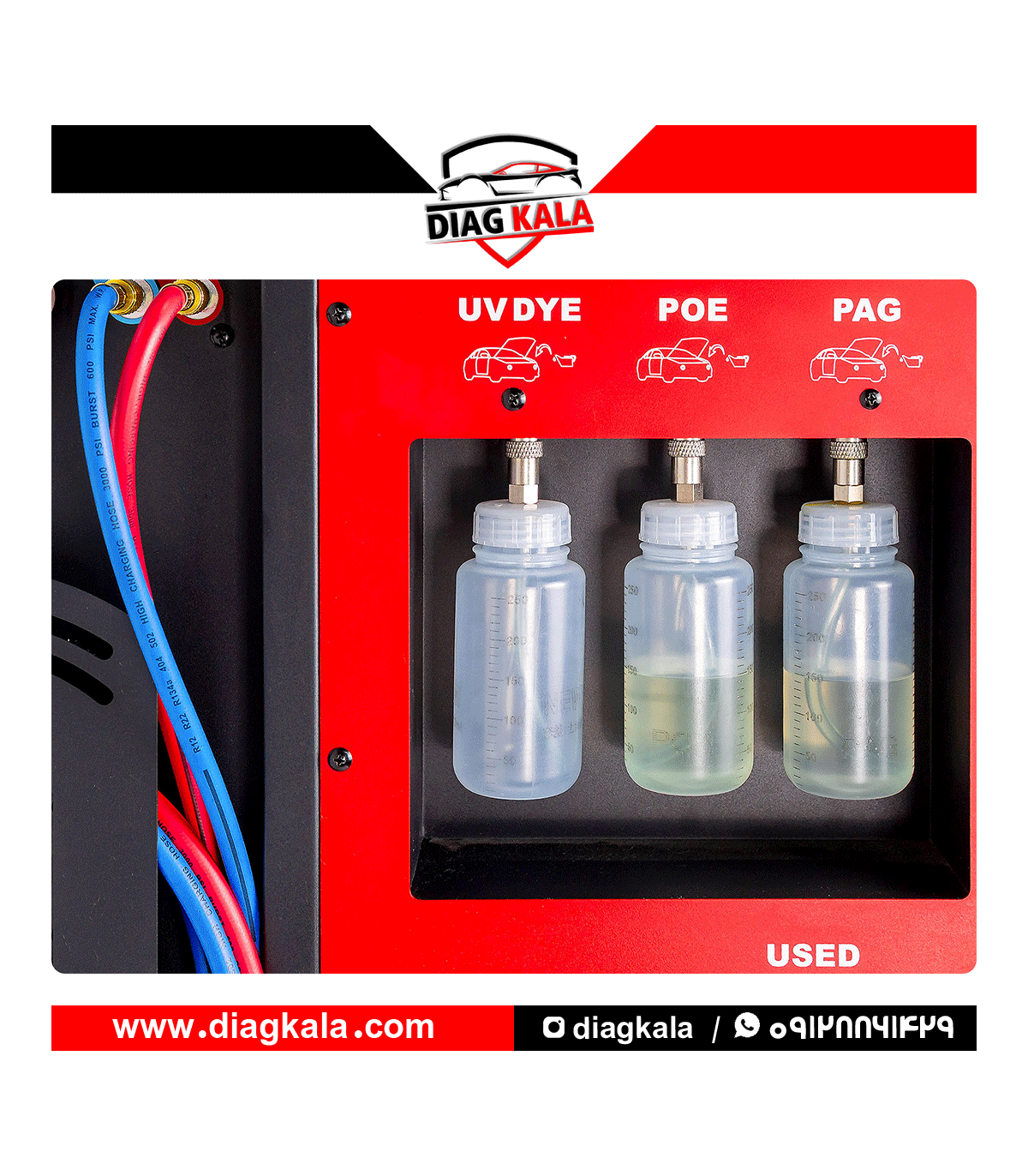 - پشتیبانی از پر کردن روغن تبرید PAG، روغن تبرید POE و مایع تشخیص UV